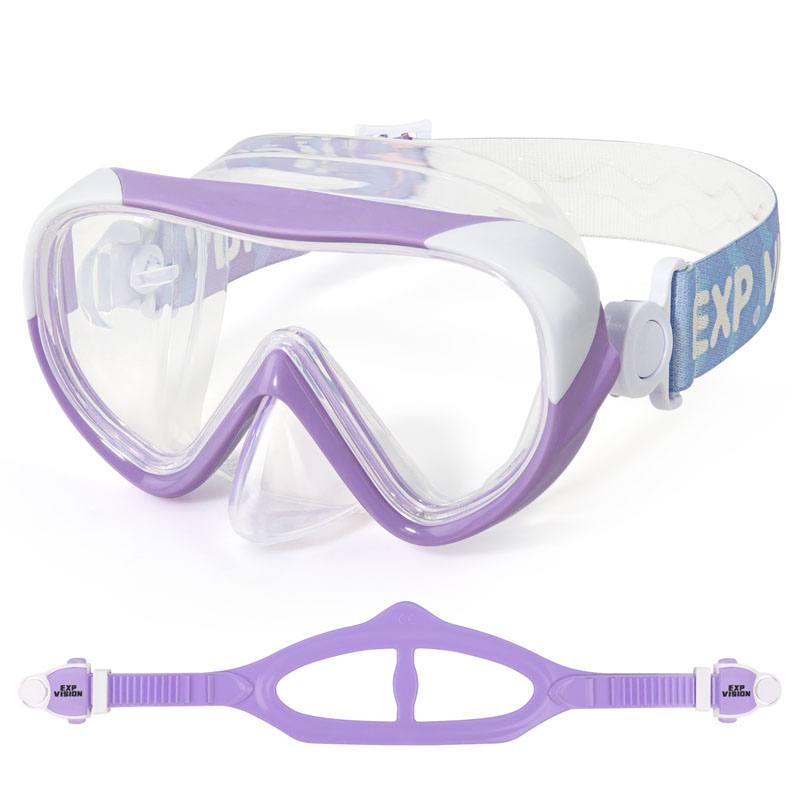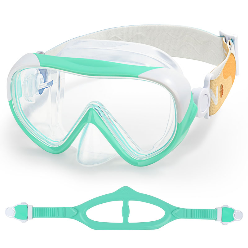 यह कपड़े के सिर के पट्टा के साथ एक बच्चे डाइविंग मास्क है। नरम कपड़े के सिर पट्टियाँ लंबे या घुंघराले बालों पर आसानी से स्लाइड करते हैं, जिससे टेंगल्स को रोका जाता है। इसके अलावा, सुरक्षित पट्टा बच्चों को जगह में तैरने वाले चश्मे को रखता है, जिससे आंखों और कानों के लिए आराम सुनिश्चित होता है।